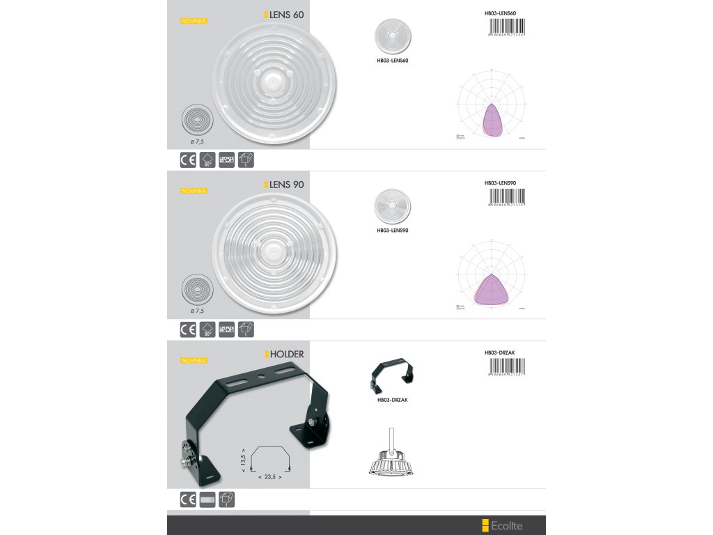 HB-LENS je plastová vyměnitelná čočka k high bay svítidlům INDUSTRY s úzkým rozptylem 60°, která nahrazuje původní skleněný kryt. Před výměnou doporučujeme důkladně pročíst uživatelský manuál nebo shlédnout naše instruktážní video.Doplňkové parametry
