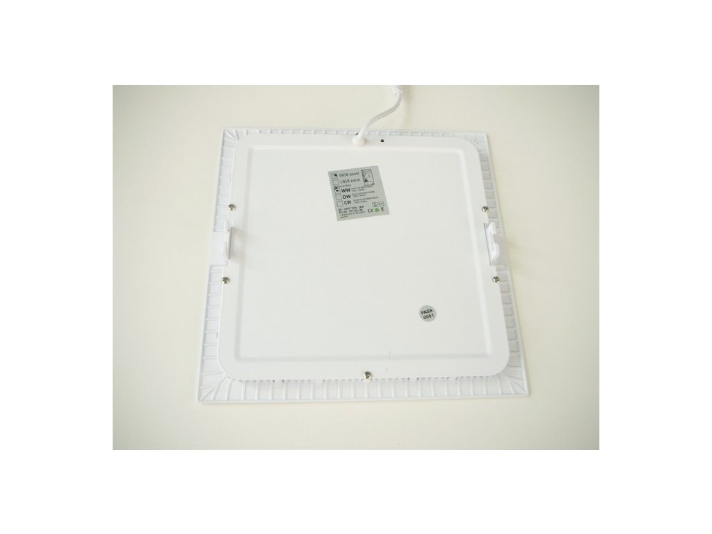 Čtvercový ultratenký mini LED panel 18W. Díky bočnímu nasvětlování nejsou jednotlivé LEDky při rozsvícení viditelné a lze použít i ultratenký design.