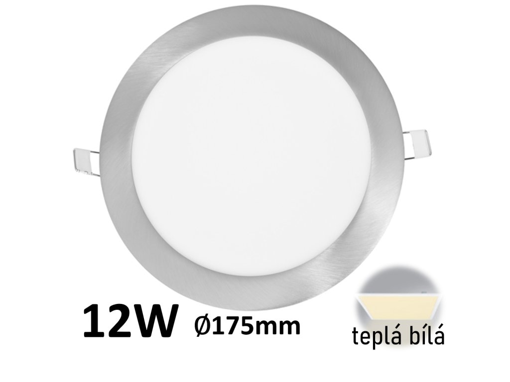 LED panel CHROM LADA 12W TEPLÁ BÍLÁ kruh vestavný IP44 /20 ECOLITE LED-WSL-12W/27/CHR
