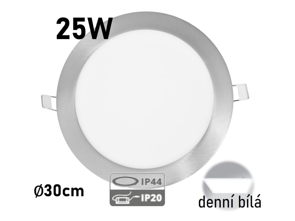 LED panel IP44/ 20 CHROM LADA 25W DENNÍ BÍLÁ kruh vestavný ECOLITE LED-WSL-25W/41/CHR