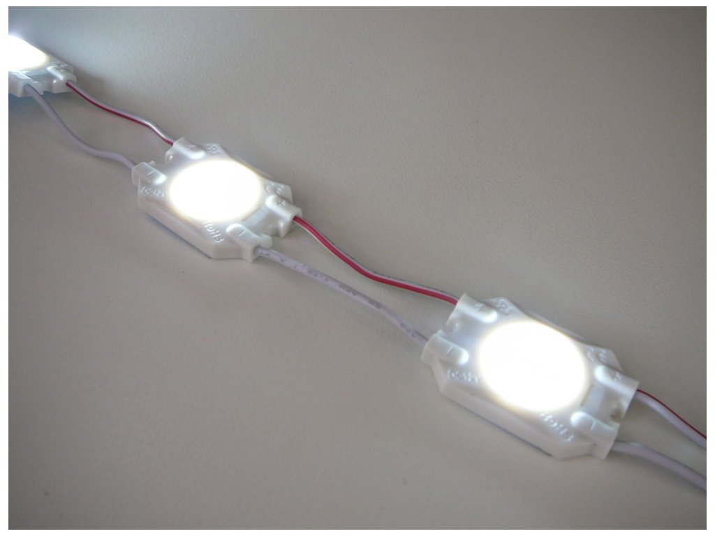 LED modul 0,72W 3725-170-12V speciálně pro úzké banery od 3cm, díky speciálné čočce je LED světlo rozptýlenější a nedělá body jako běžné moduly.