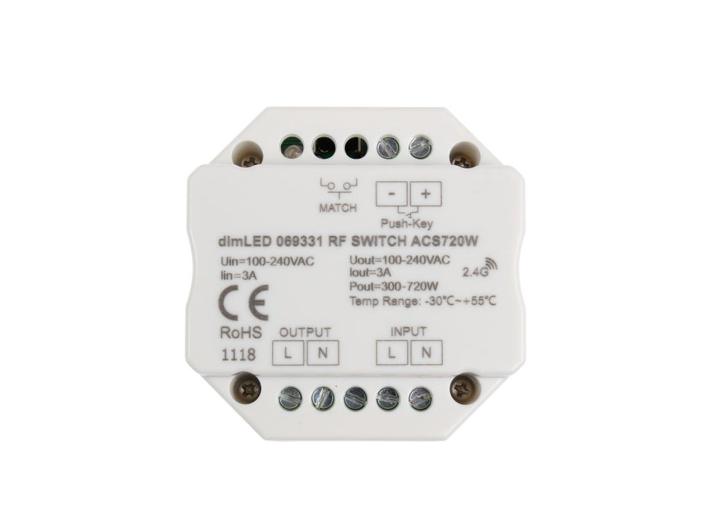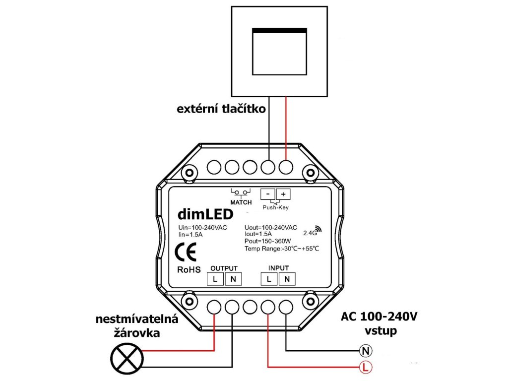 Spínač dimLED pro jakékoliv spotřebiče na 230V včetně LED. Zařízení pouze zapíná a vypíná připojená zařízení, prostřednictvím zásuvky nelze stmívat. Zásuvka dimLED je kompatibilní se všemi dálkovými ovladači řady dimLED z naší nabídky, kterými můžete zároveň ovládat i systémy na 12 či 24V - vše tedy řídíte jedním ovladačem. Díky těmto možnostem patří mezi špičku na našem trhu.