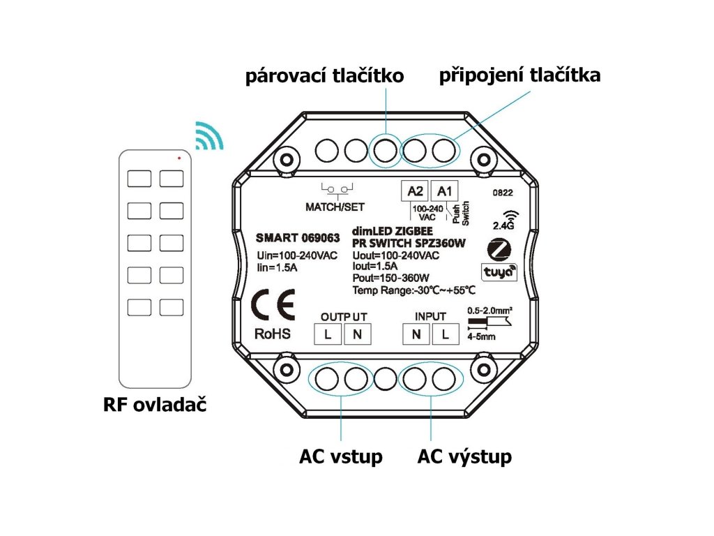 Spínač dimLED ZIGBEE PR ovládání telefonem i ovladačem SPZ360W