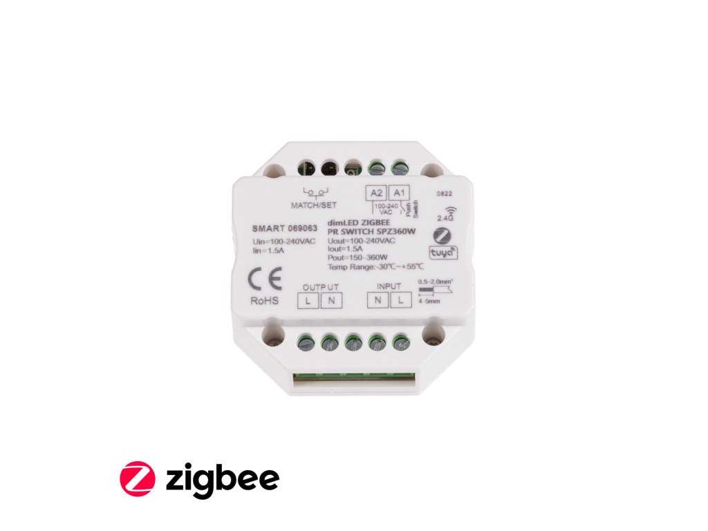 Chytrý radiofrekvenční přijímač stmívač pro LED produkty podporující standart ZigBee 3.0 (Philips HUE, IKEA TRADFRI a další). Přijímač může být ukrytý (za zdí, sádrokartónem či ve skříni), není nutná přímá viditelnost přijímače pro ovladač. Přijímačem dimLED ZIGBEE PR SPZ360W má 1 výstup a lze ovládat:- 230V nestmívatelné světelné zdroje