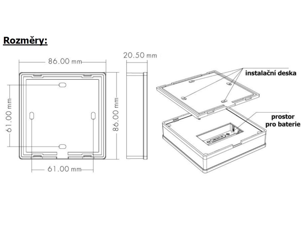| Rozměry | 86 x 86 x 20,5 mm (lze namontovat na standartní EU krabici) | ||