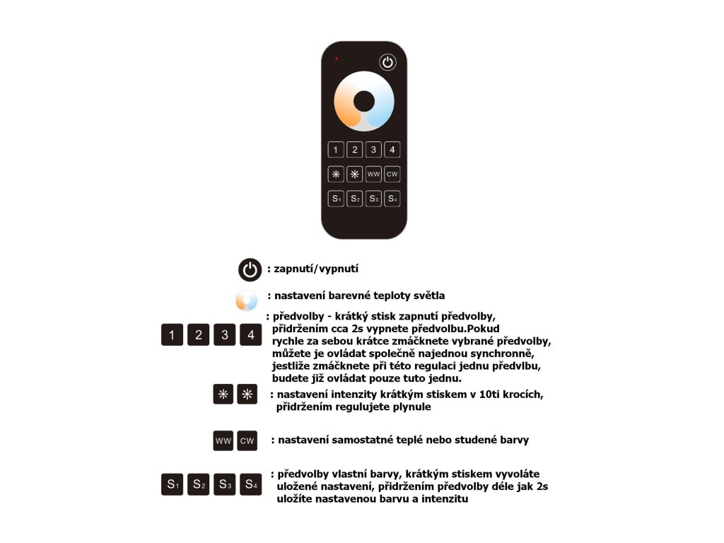 Stmívání je stabilní a spolehlivé, dosah ovladače ≤ 30M.