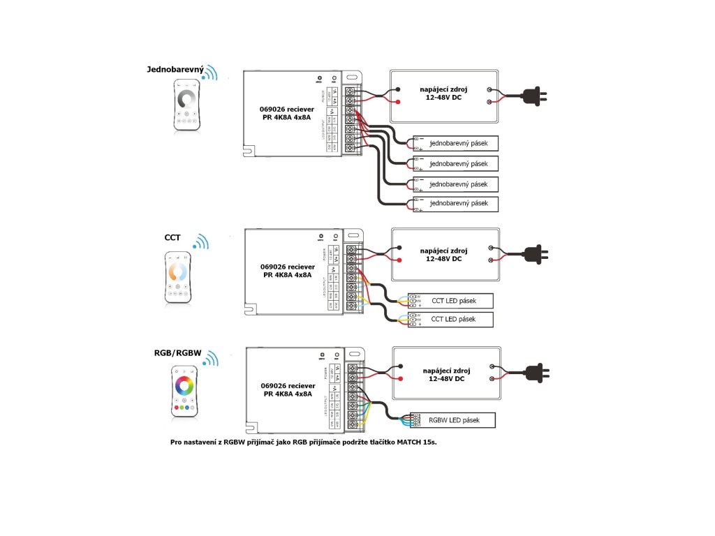 Pro ovládání více okruhů je nutno použít jeden přijímač na každý okruh. Na každý přijímač lze napárovat až 10 různých ovladačů řady dimLED a tak ovládat z několika míst.