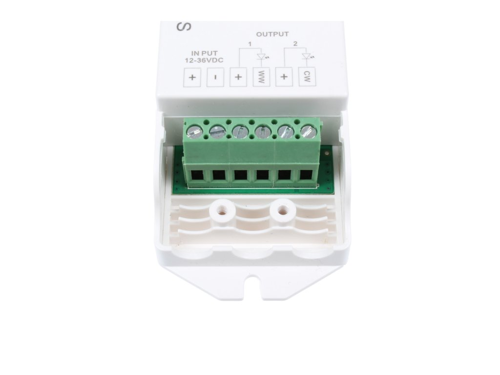 Radiofrekvenční přijímač stmívač pro CCT LED produkty. Přijímač může být ukrytý (za zdí, sádrokartónem či ve skříni), není nutná přímá viditelnost přijímače pro ovladač.