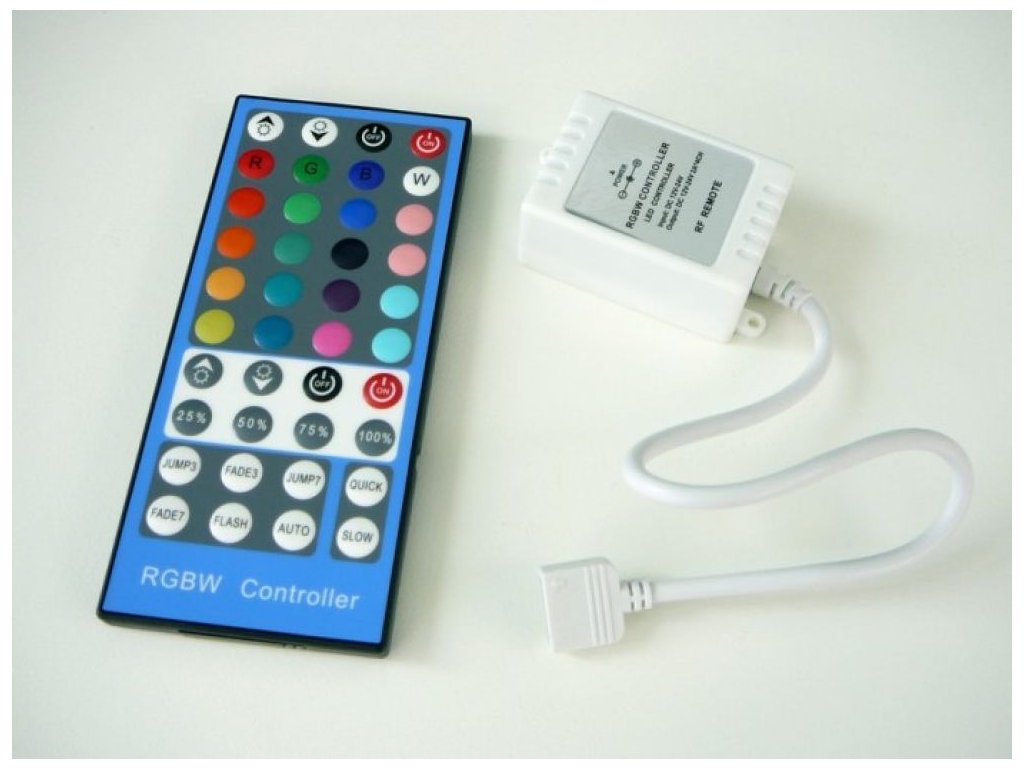 LED ovladač RGBW-RF40B 8A je bezdrátový radiofrekvenční ovládací systém pro LED pásky RGBW a nebo pro kombinaci RGB a jednobarevného pásku. Buď svítí samostatně RGB, jedna barva nebo RGB a jedna barva společně.