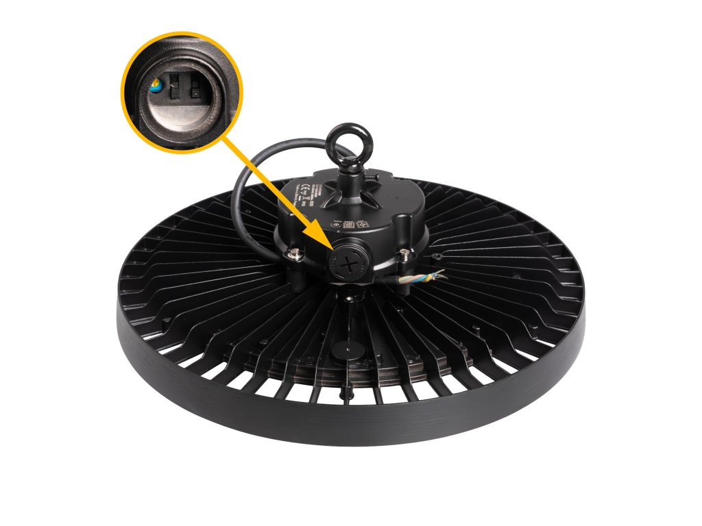 200W CCT LED průmyslové svítidlo typu "High Bay", kterým lze nahradit průmyslové osvětlení ve skladech, průmyslových halách, fabrikách a dalších průmyslových objektech nebo jiných nemovitostí. U modelů CT5 nabízíme záruku 5 let.Halové LED svítidlo CT5 200W můžete pomocí přepínače nastavit na tyto hodnoty výkonu: