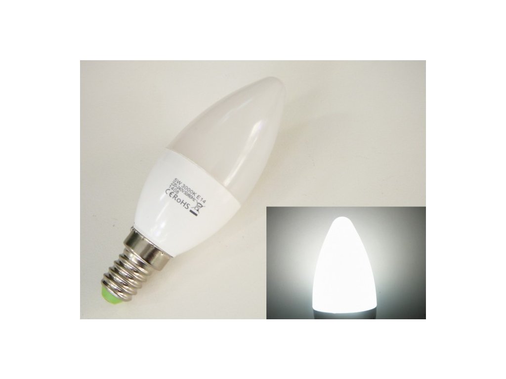 LED žárovka E14 EV5W svíčka TEPLÁ BÍLÁ
