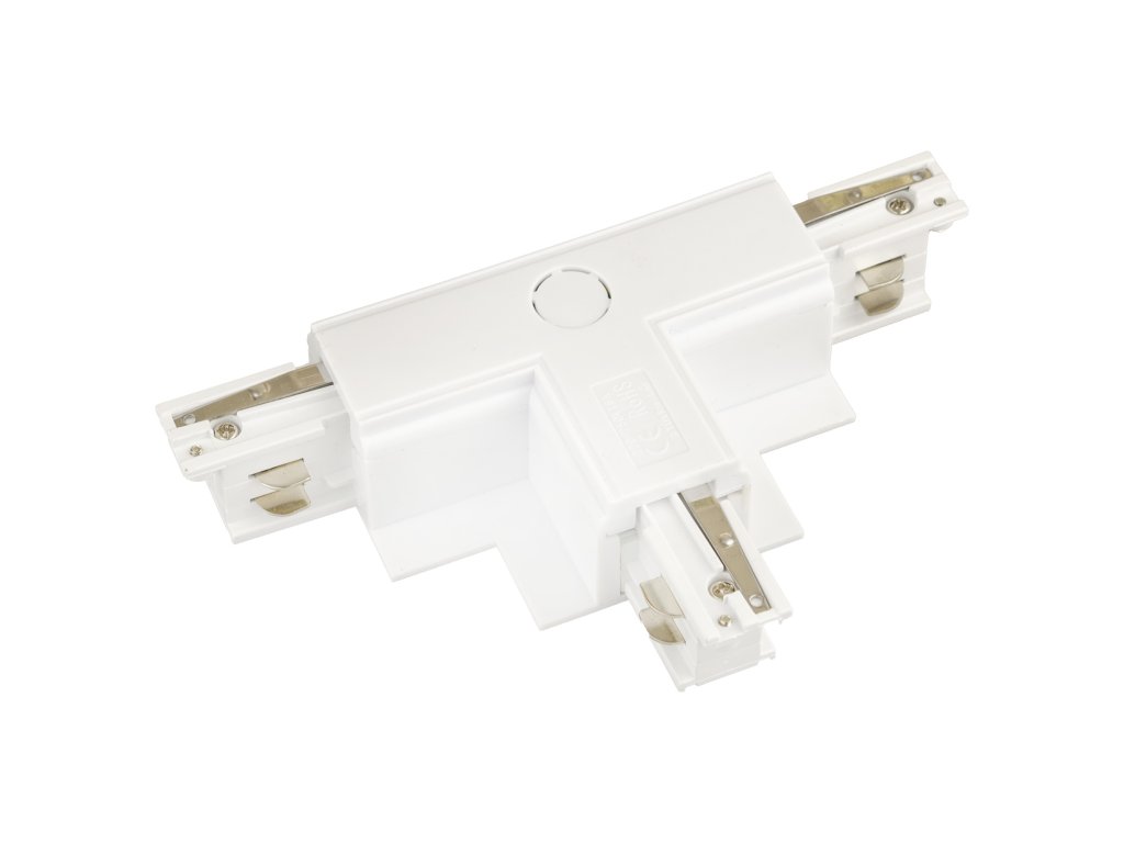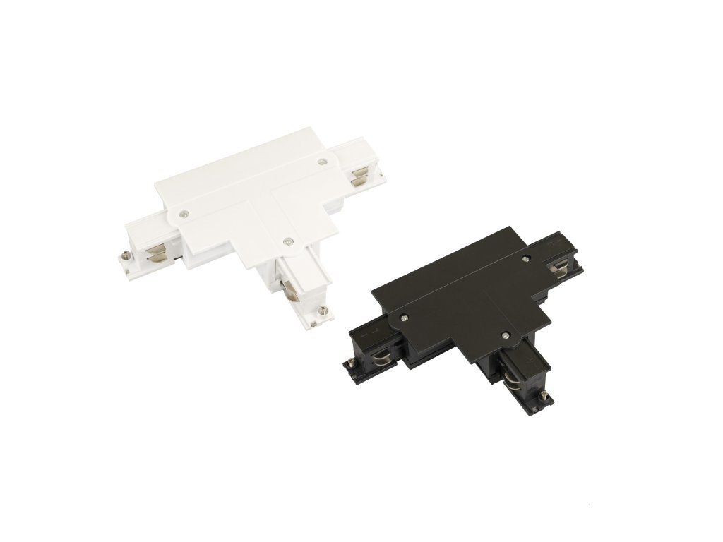 T spojka Z3F s připojením pro vestavnou třífázovou vodící lištu 230V, na výběr v barvě černé a bílé. Pomocí spojky s připojením přivedete napájení do třífázových lišt, spojíte s nimi libovolný počet vodících lišt. Lze použít pro 3 nezávislé světelné okruhy, světla v liště lze libovolně posouvat a natáčet. Lišty se připojují a spojují pomocí příslušenství z naší nabídky (spojky, přípojky, koncovky).Nápomocný Vám může být i článek kolejnicový systém osvětlení. V galerii naleznete nákres s červenou čárou, který Vám pomůže s výběrem komponent. Červená čára zobrazuje zemnící vodič a aby komponenty do sebe zapadli, musí být vždy zemnící vodiče zapojovat proti sobě. Nákres zobrazuje pohled ze země směrem na strop, tedy tak, jak bude instalace provedena již na stropě a Vy se na instalaci díváte.