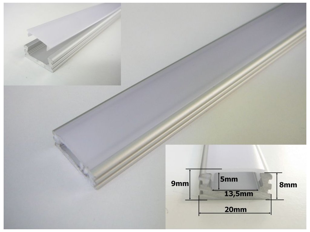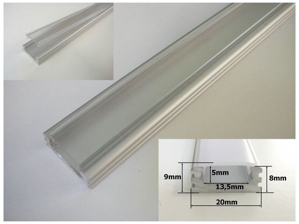 Výhoda tohoto profilu je možnost nacvaknutí plastové krytky (difusoru) přímo z čelní strany profilu. Difusory jsou vyrobeny z kvalitního UV odolného polycarbonátu, který postupem času nežloutne, měkčený, nepraská.