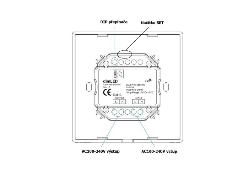 Nástěnný triakový LED stmívač dimLED KNT240W kombinuje vlastnosti přijímače a ovladače. S jedním ovladačem KNT240W lze ovládat 1 okruh, který se může skládat i z několika přijímačů na více místech. Zároveň lze přímo na výstup stmívače KNT240W připojit LED osvětlení a ovladač KNT240W použít i jako přijímač. Ovladačem KNT240W lze tedy ovládat i jiné řady přijímačů dimLED a zároveň k němu lze spárovat jiné modely ovladačů dimLED.Vlastnosti a výhody systému dimLED:
