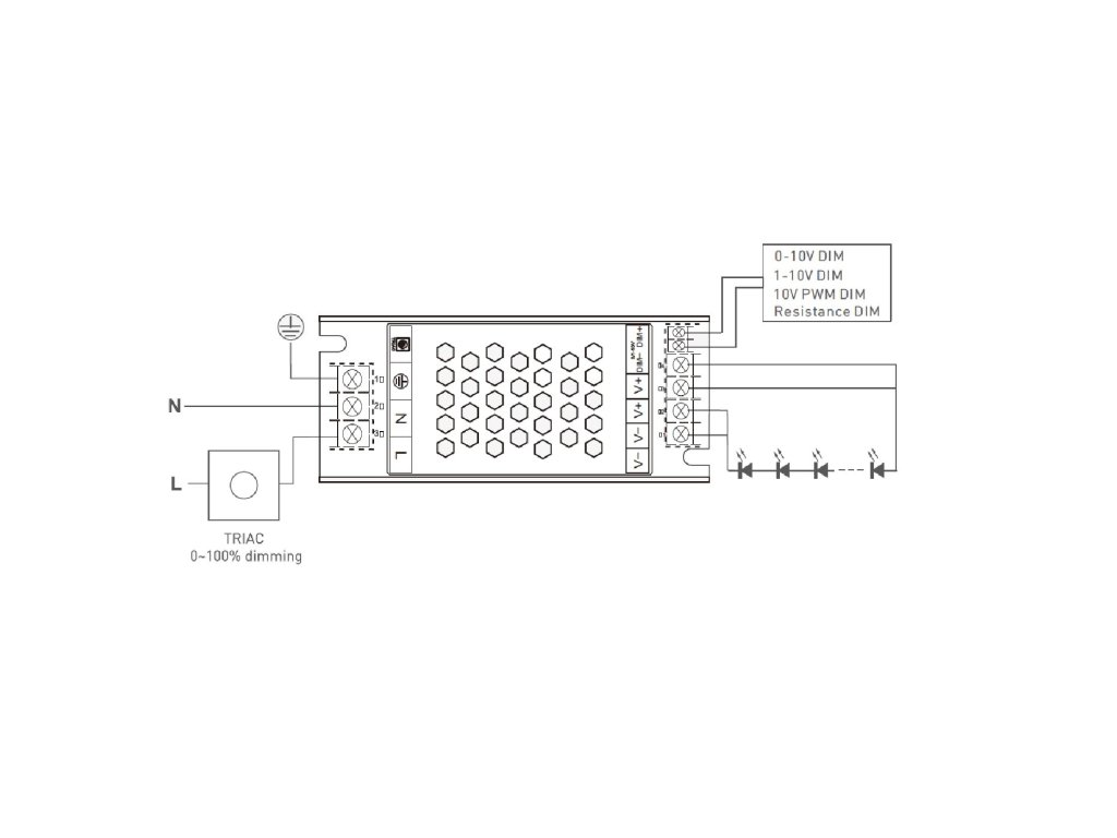 - na vstupu pomocí TRIAC stmívače (průběh a rozmezí stmívání u triakových stmívačů závisí na modelu stmívače)