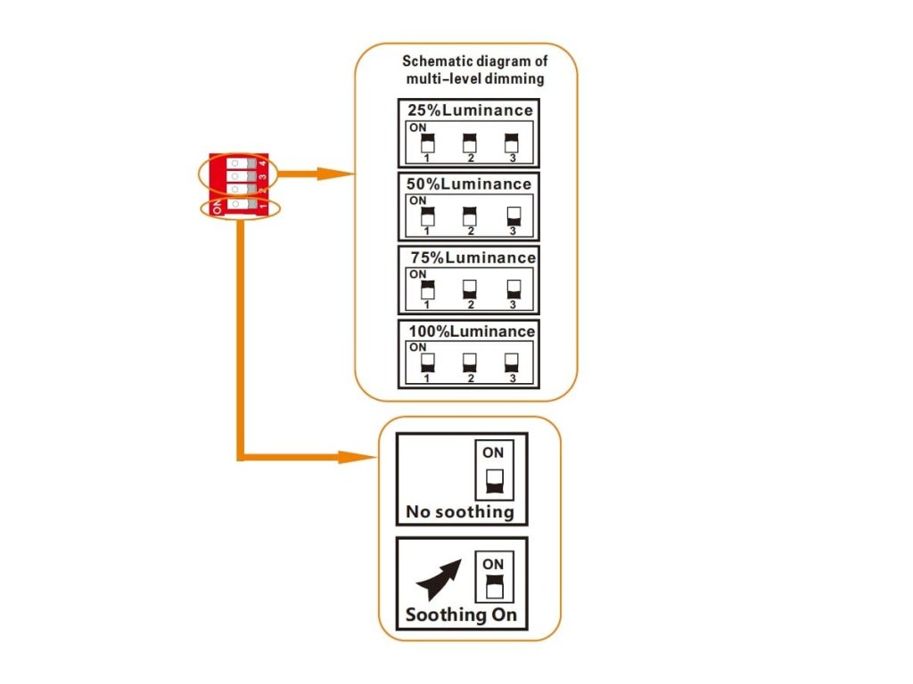 - možnost nastavení výstupní intenzity osvětlení v hodnotách 25%, 50%, 75% a 100% (u řad LED pásků CC, EFI, COB a obecně speciálně stavěných LED pásků není funkce plnohodnotná)