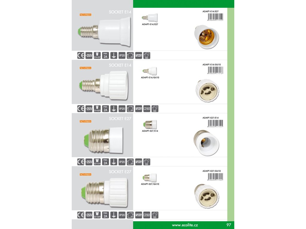 Ecolite ADAPT je produktová řada samostatně prodejných redukcí. Za velmi příznivou cenu tak můžete snadno vyřešit například problém s nakoupením nekompatibilních zdrojů. Stačí si vybrat správný závit/patici. Stupeň krytí je IP20.Doplňkové parametry