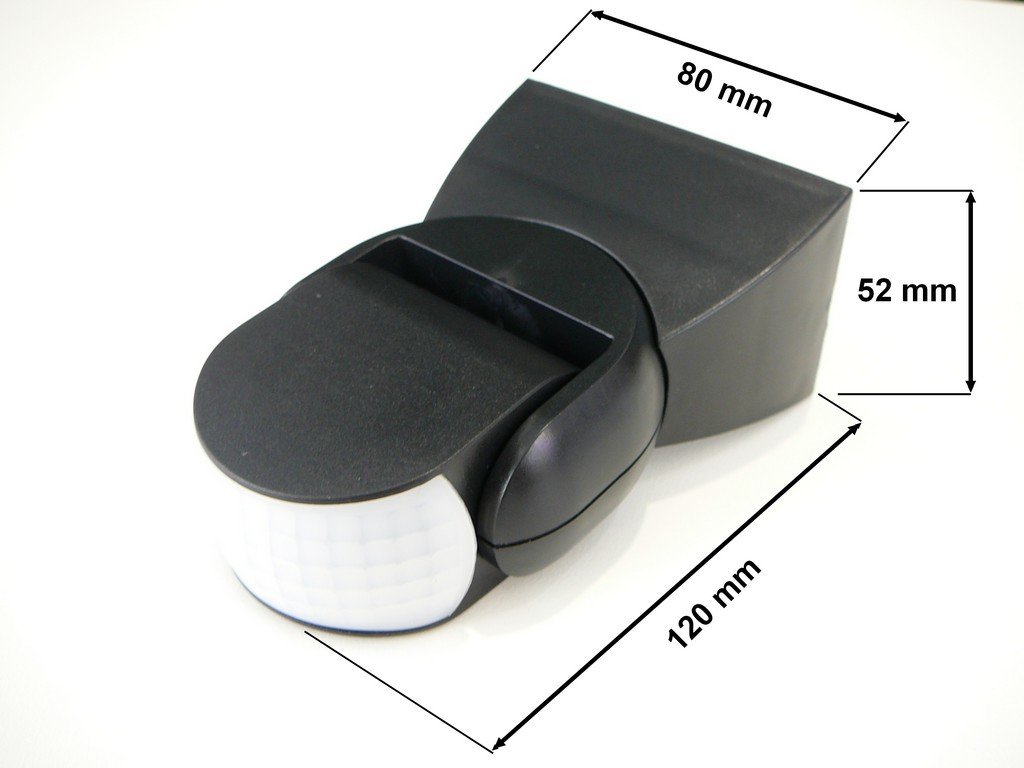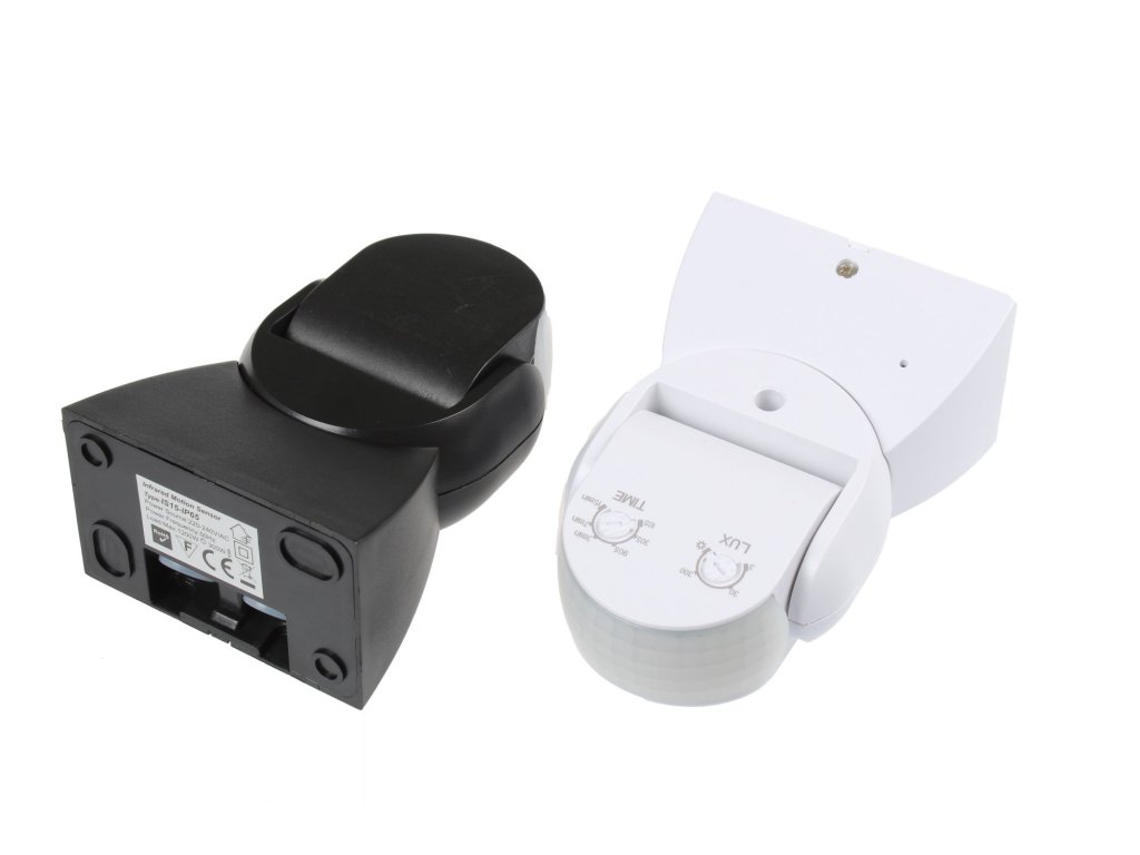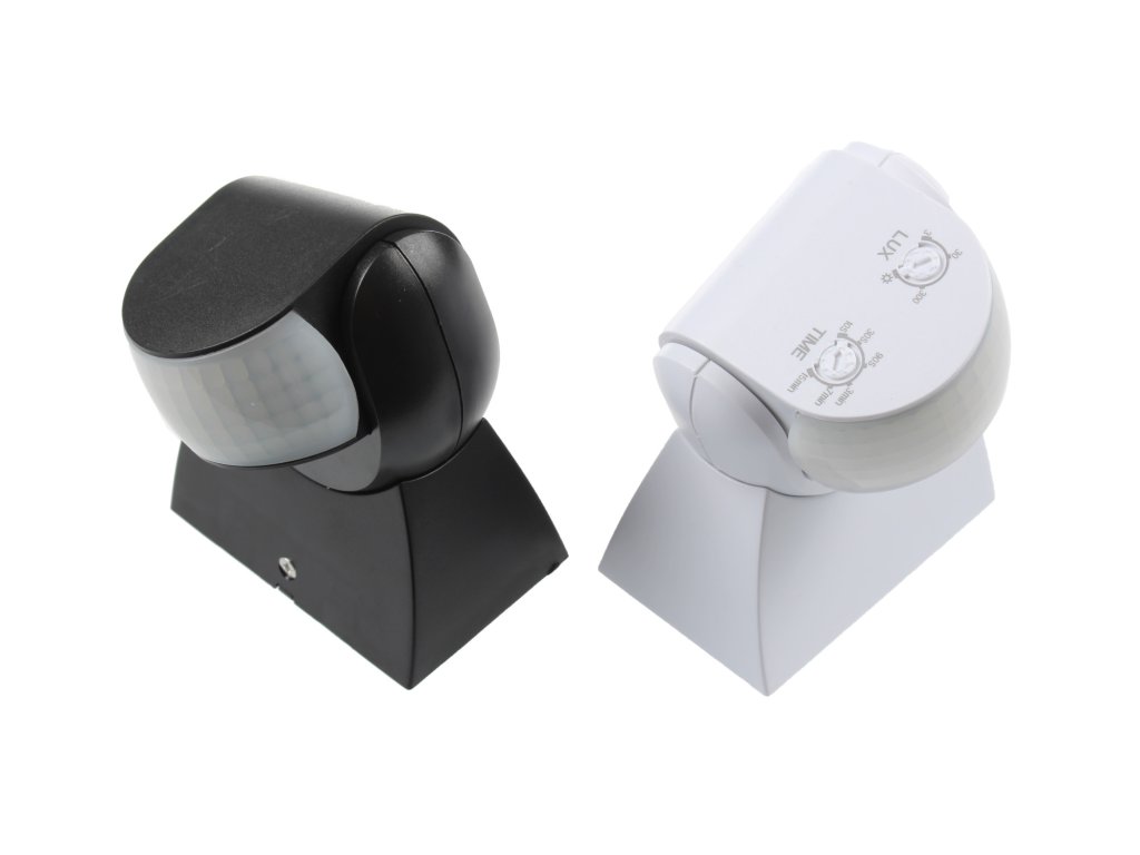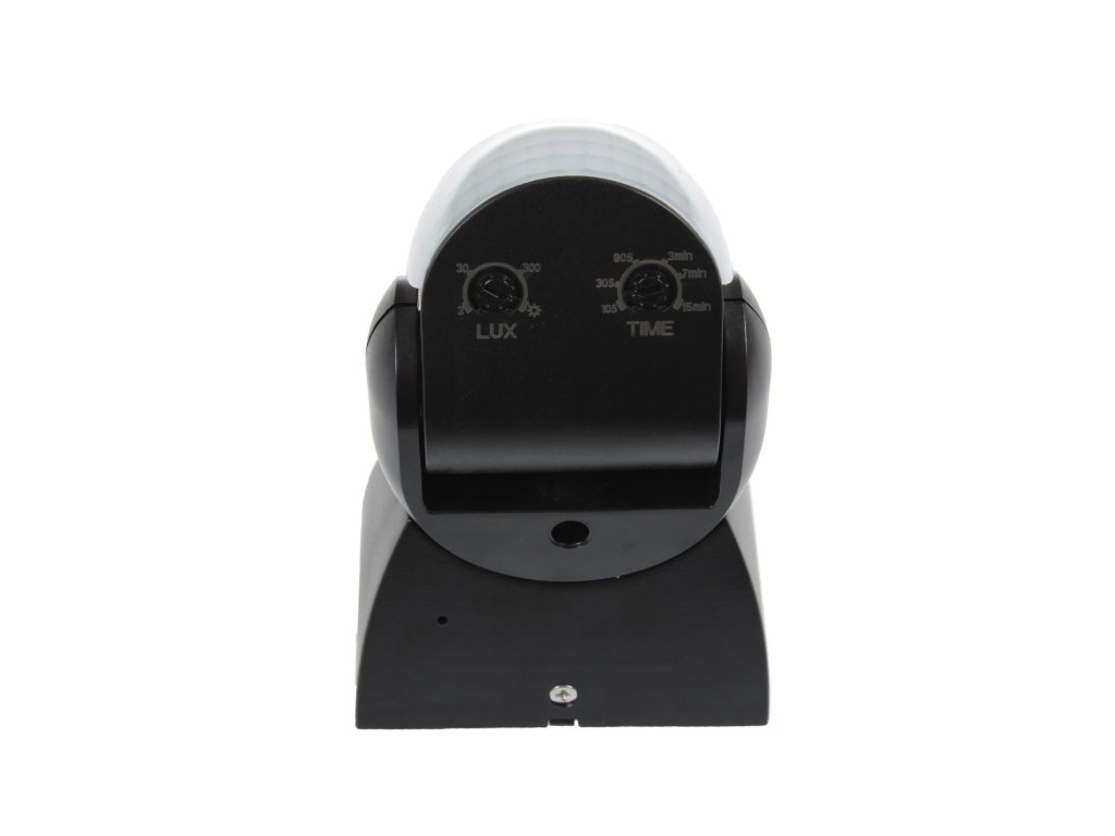Infračervené pohybové čidlo, úhel záchytu 180°, dosah až 12 metrů, možnost nastavit dobu sepnutí v rozmezí 10s - 7min, regulace citlivosti na okolní světlo 3-2000lx.