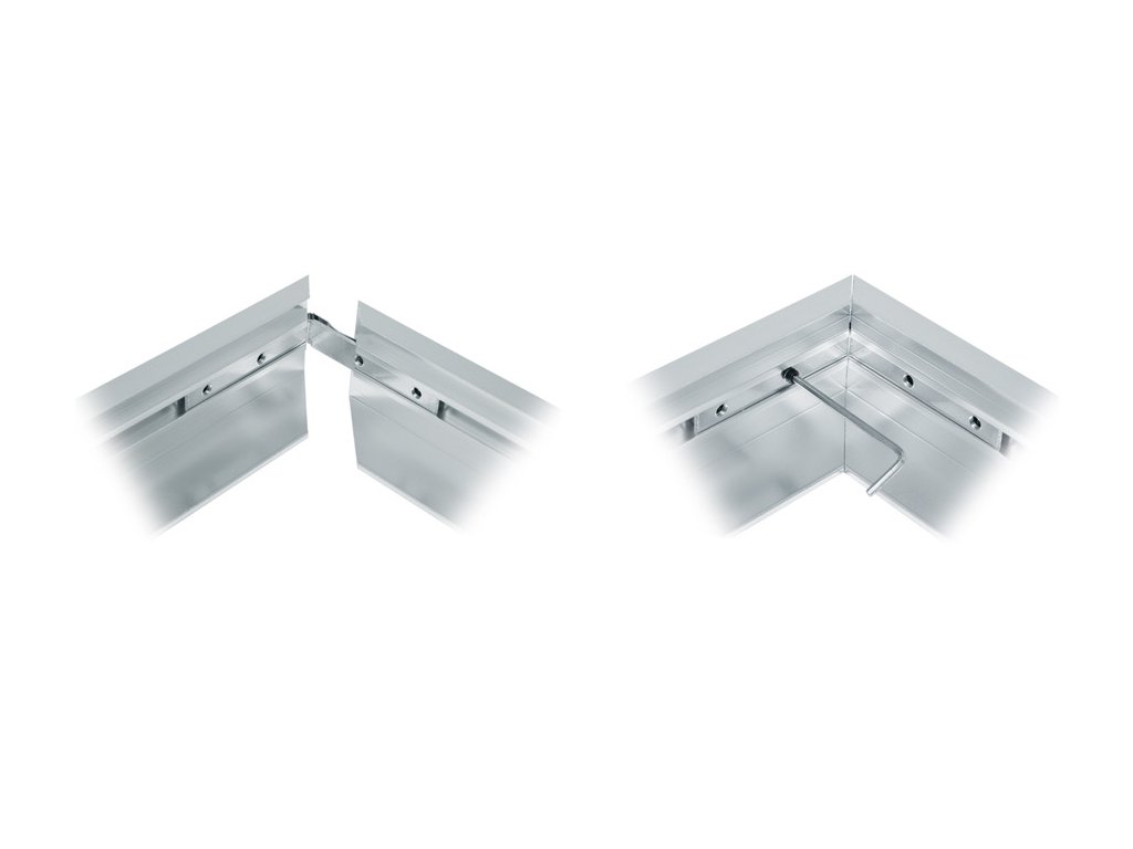 Rámeček pro přisazení svítidla (led panelu) je spojovaný z vnitřní stany pomocí úhelníků a imbusových šroubů, které jsou součástí balení. Z pohledové strany tak není vidět žádný spojovací šroubek.