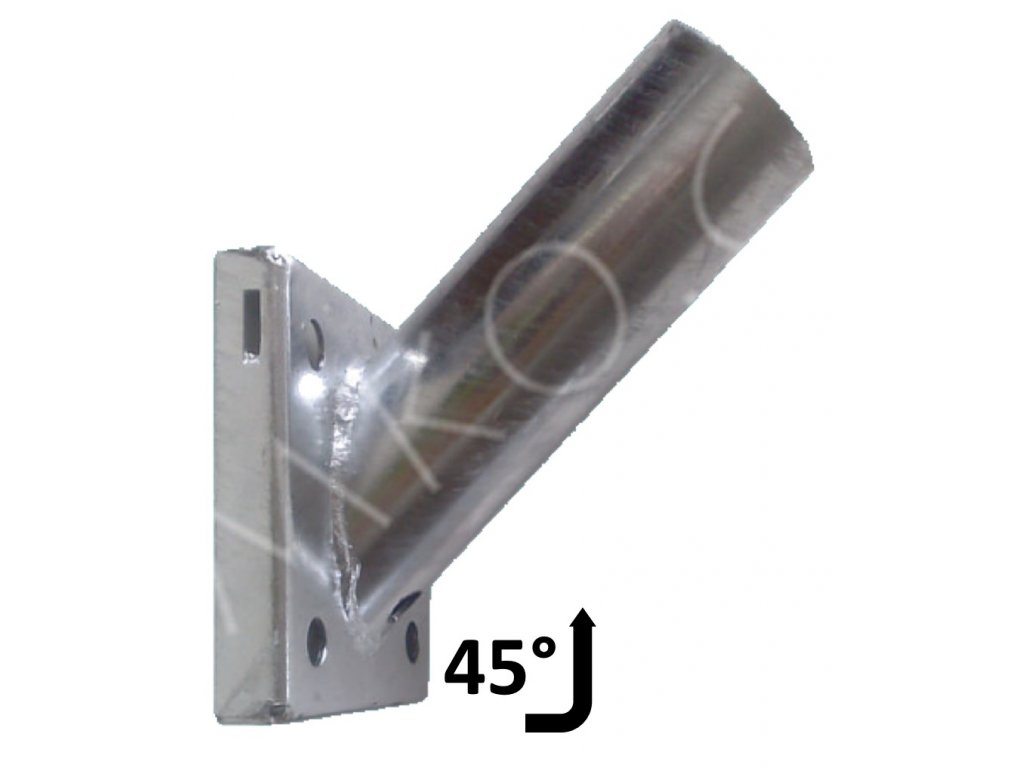 Výložník slouží k upevnění lamp veřejného osvětlení. Výložník je pevný, úhel 45 stupňů, průměr 60mm. Délka 190mm. Hmotnost 0,8kg. Podstava 130 x 130mm. Průměr otvorů 15mm. Povrchově upraveno žárovým zinkem.