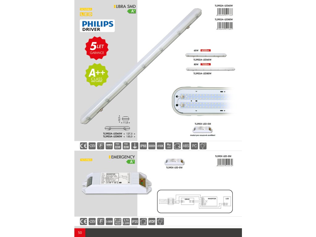 Prachotěsné průmyslové LED svítidlo LIBRA SMD je plnohodnotná náhrada za zářivkové prachotěsy. Využívá vysoce úspornou technogii SMD (čip 2835), vynikající předřadník značky Philips a vyznačuje se vysokou odolností proti prachu a vlhkosti IP65. Je tak vhodné například do výrobních, hal, skladů, ale i k venkovnímu použítí. Životnost zdroje je zhruba 30 000 hodin.Doplňkové parametry