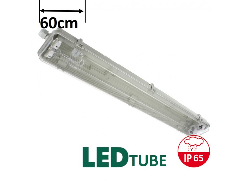 Prachotěsné svítidlo pro LED trubice 60cm. Těleso s vysokým krytím IP65 je možné instalovat do prašného i vlhkého prostředí. Určené pro jednostranně napájené LED zářivky T8. Trubice nejsou součástí dodávky