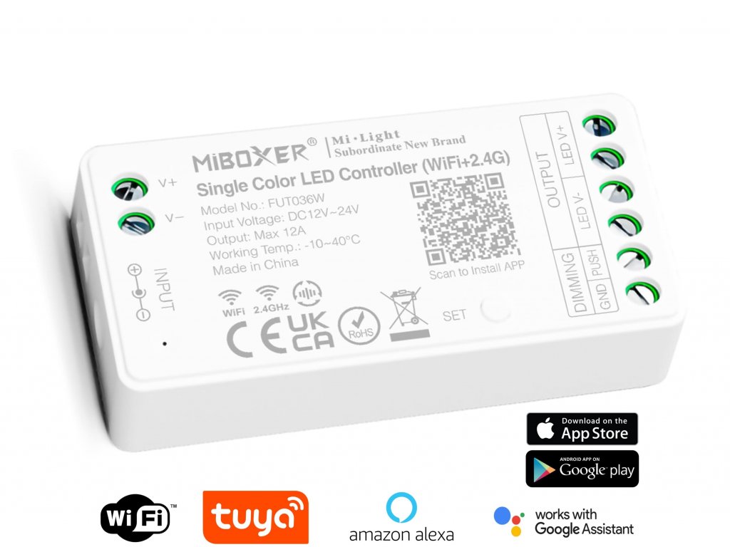 WiFi chytrý přijímač pro JEDNOBAREVNÉ LED pásky TUYA 12A 12V 24V FUT036W