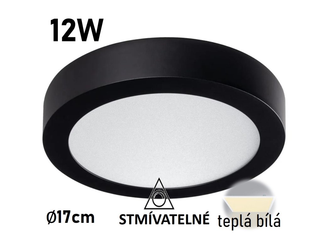 LED panel stmívatelný CARSA 170mm 12W černý TEPLÁ BÍLÁ 33532
