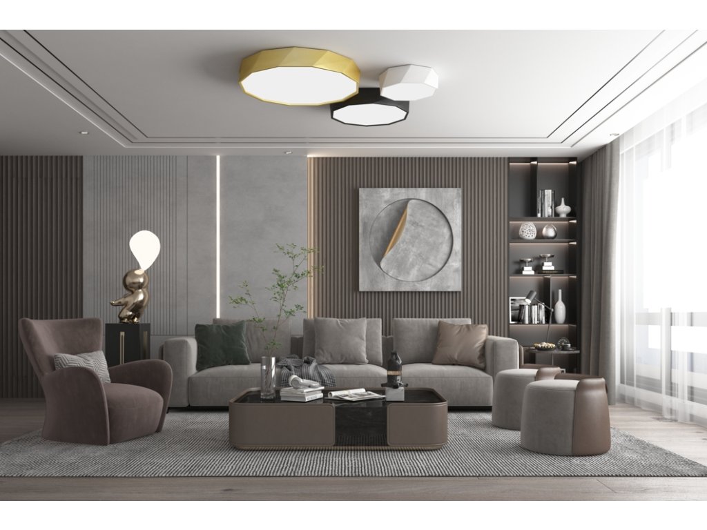 Rodina stropních Smart svítidel DIAMANTE - 3 rozměry (40, 60, 80cm), 3 barevné provedení (černé, bilé, zlaté). velikosti i odstíny lze kombinovat, tak aby kolekce pokryla potřeby i velmi náročných uživatelů.