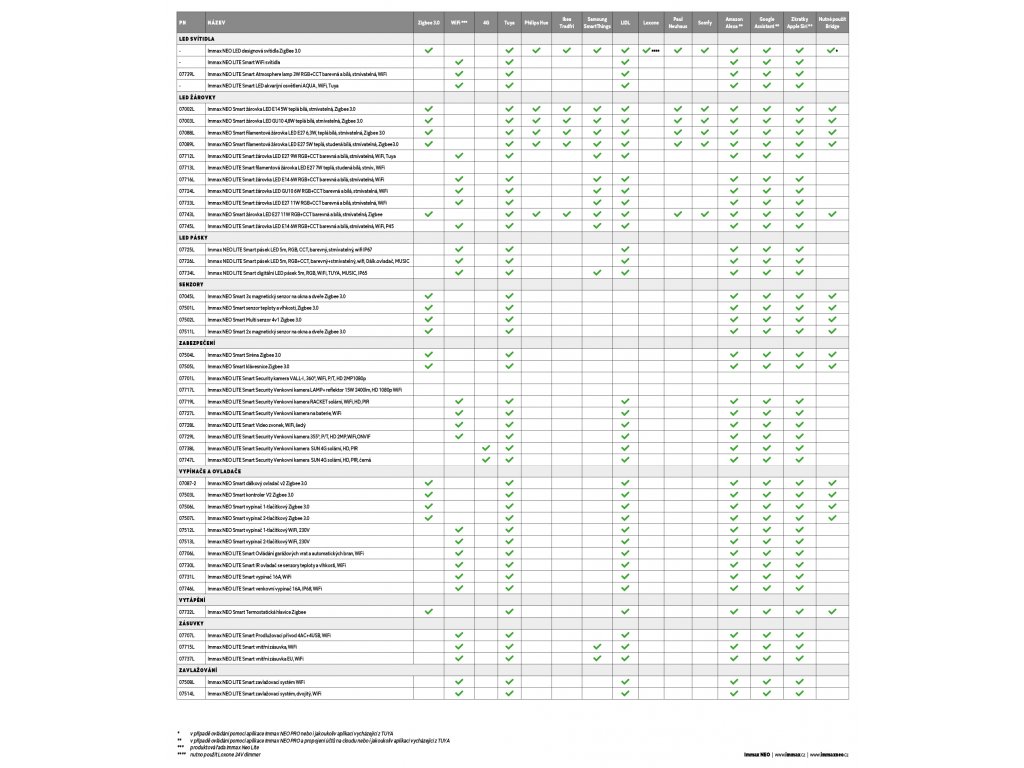 Systém Immax NEO LITE je plně kompatibilní se Samsung SmartThings. Amazon Alexa, Google Assistant a Apple Siri zkratky, aplikace iOS, Android. Svítidlo lze také ovládat pouze dálkovým IR ovladačem, který je součástí balení.