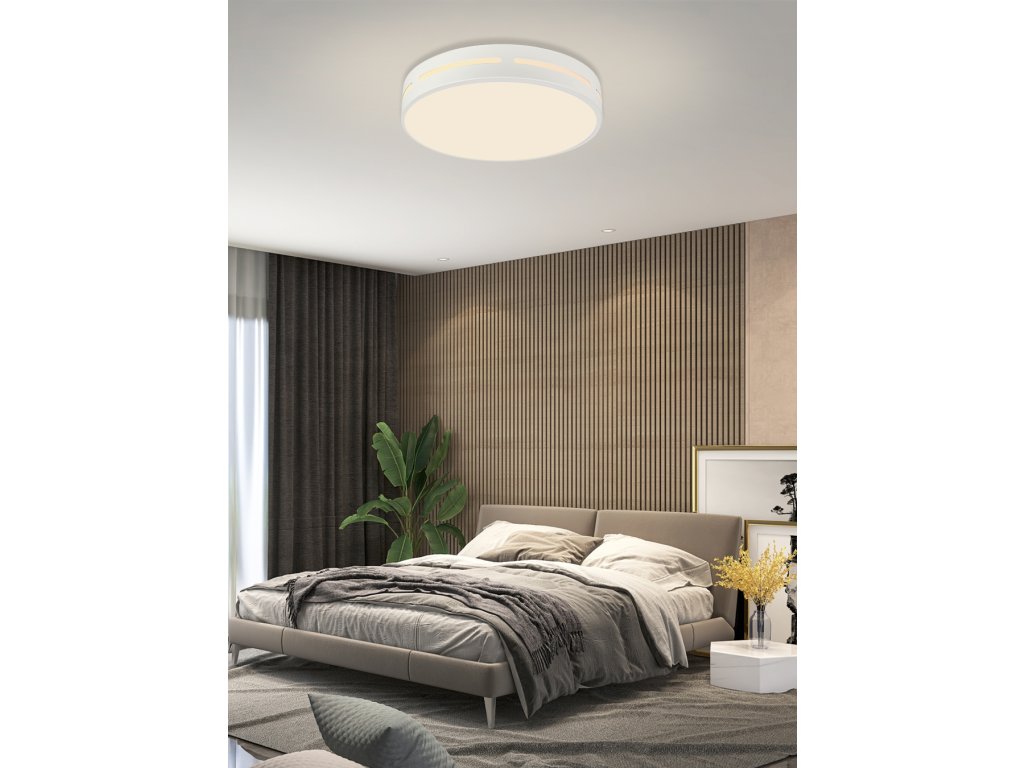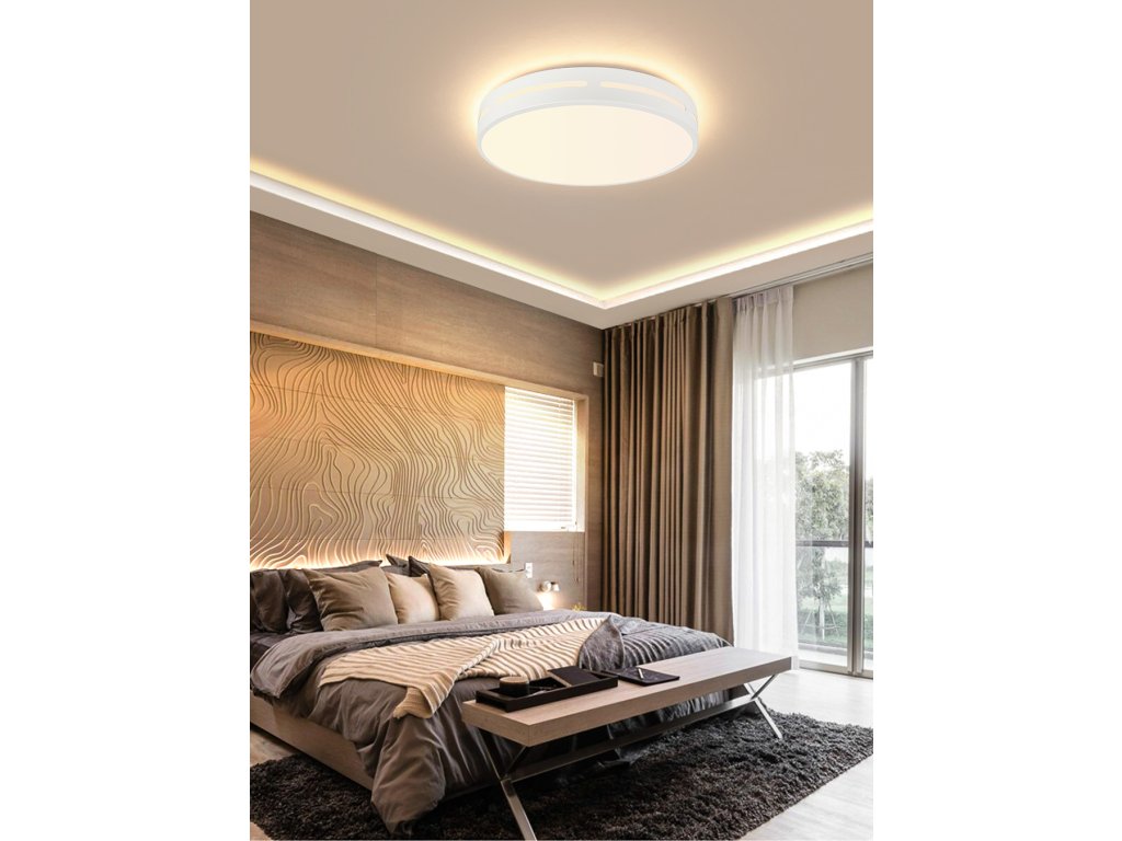 Specifikace Protokol: Tuya Wi-fi Materiál: hliník, kov, plast Barva svítidla: bílá matná Rozměry: D300 x 60mm Příkon: 24W Světelný tok: 1500lm Barva světla: CCT 2700-6500K Stmívatelný: ano Doba svícení 50 000 hod Vstupní napětí zdroje: AC 220V CRI(Ra) Index podání barev: >80 (denní světlo má hodnotu Ra 100) IP20