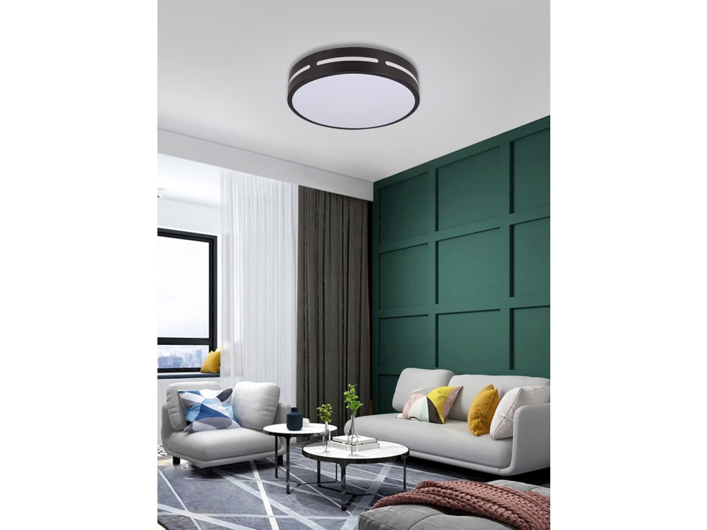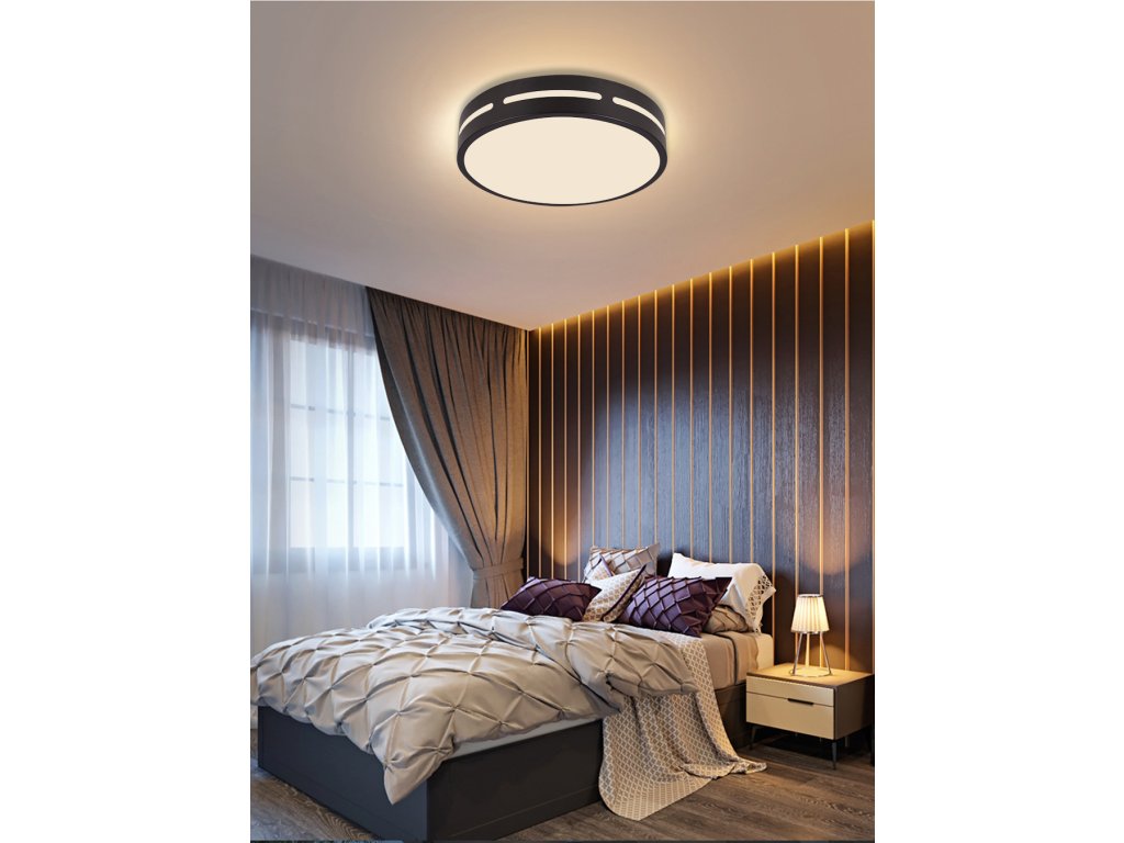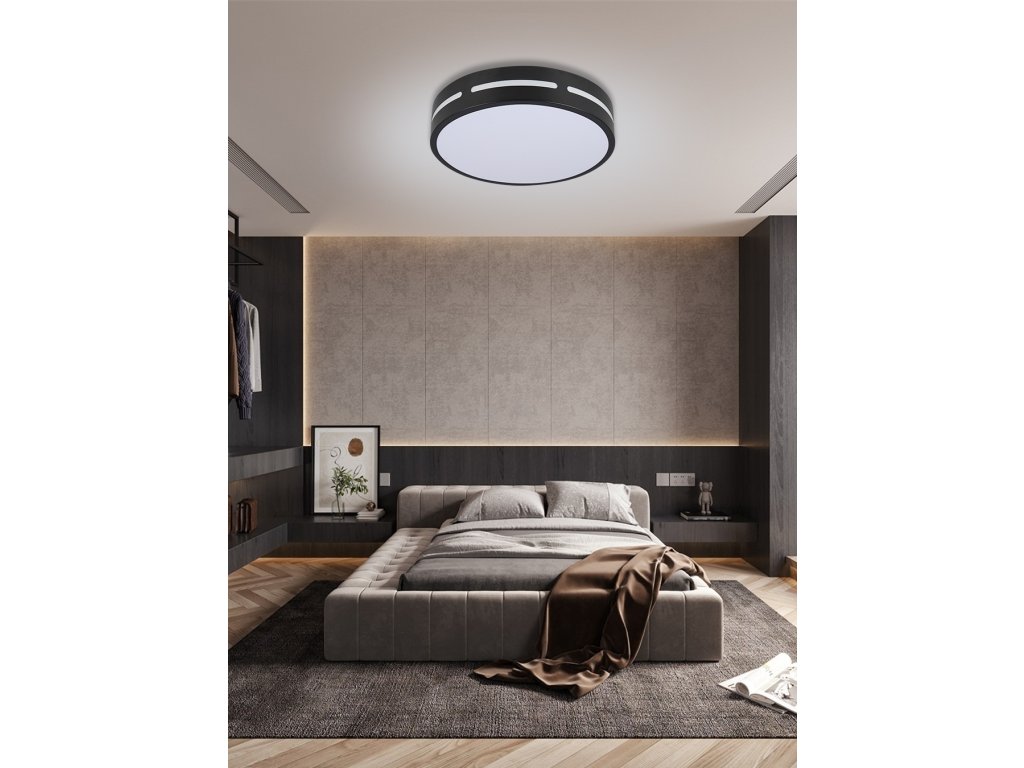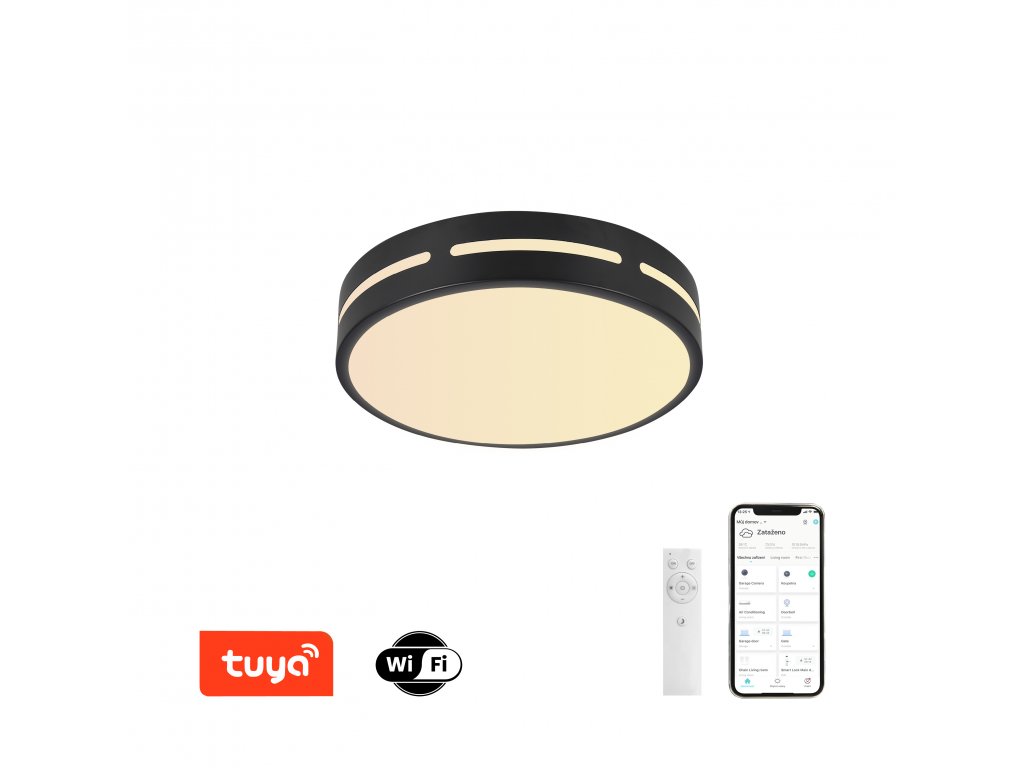 Inteligentní stropní LED svítidlo PERFECTO Smart z kolekce Immax NEO LITE, průměr 40cm. Černé svítidlo, provedení v kovu s několika bočními průsvity, které mírně rozptýlí světlo také do stran. Vyspělá technologie ve stropnici komunikující bezdrátově pomocí Wi-fi na protokolu Tuya, umožní integraci svítidla do aplikace Immax NEO PRO. I na dálku Vám pomůže vytvořit ideální osvětlení, které v dané situaci očekáváte. Stmívání, změna barvy světla od teplé odpočinkové barvy, přes přirozenou, po studený odstín bílé či nastavení vlastních světelných režimů.