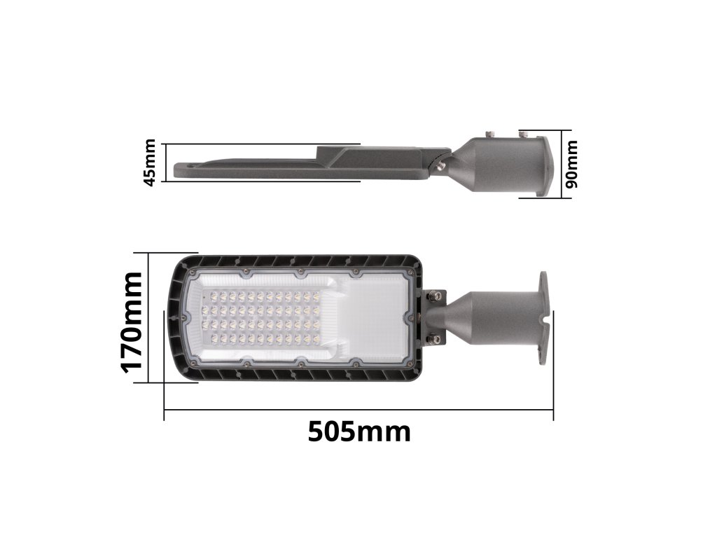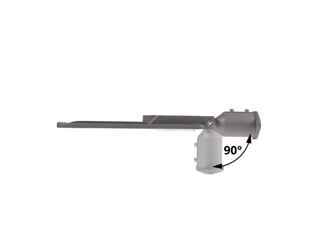 Ochrana proti přepětí 10 kV chrání svítidlo před napěťovými výkyvy v síti a významně tak prodlužuje jeho životnost. Praktický otočný kloub umožňuje jednoduchou montáž jak ve vodorovné, tak i ve svislé poloze – na výložníky nebo sloupy veřejného osvětlení. Náklon světla lze navíc nastavit v rozsahu ±15°, což zajišťuje optimální nasměrování světelného paprsku podle konkrétní potřeby.