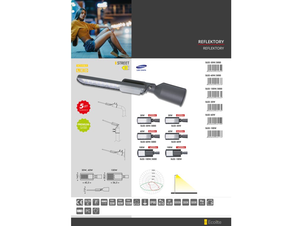 LED veřejné osvětlení 60W 8400lm 5000K STREET DENNÍ BÍLÁ SL02-60-5000