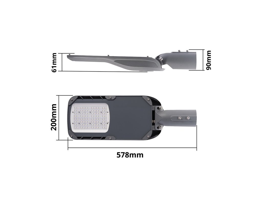 LED pouliční svítidlo VOM5 je energeticky úsporné svítidlo s vysokou účinností od 120lm/W, navržené pro veřejné osvětlení a s IP krytím IP65 pro zajištění odolnosti vůči povětrnostním vlivům. Na toto svítidlo nabízíme 5letou záruku. Svítidlo je také vybaveno 10kV přepěťovou ochranou (SURGE PROTECTION) pro ochranu proti výkyvům napětí. Součástí svítidla je kloub, který lze nechat ve vodorovné poloze, nebo otočit o 90° a instalovat svítidlo na svislé výložníky nebo stožáry. V obou polohách je možné upravit naklonění světla až o ±15°.Toto LED svítidlo je ideální volbou pro náhradu venkovního veřejného osvětlení, jako je osvětlení ulic, staveb, reklamních ploch a billboardů, parkovišť, stavenišť a dalších veřejných prostorů. S vysokou účinností a dlouhou životností LED diod nabízí výrazné úspory energie a nákladů na provoz.